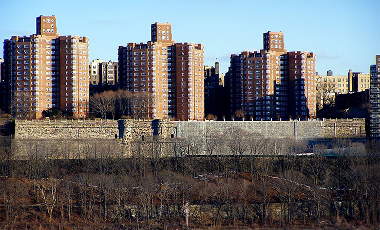 Tight Locations: Narrow access between the wall and an apartment building (seen in the photo above) was made even more difficult by overhead powerlines.
